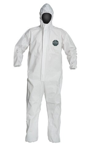 DuPont™ ProShield® 50 Coverall. Respirator Fit Hood. Elastic Wrists and Ankles. Storm Flap. Serged Seams. Pin Lock Slider Zipper Pull. White.